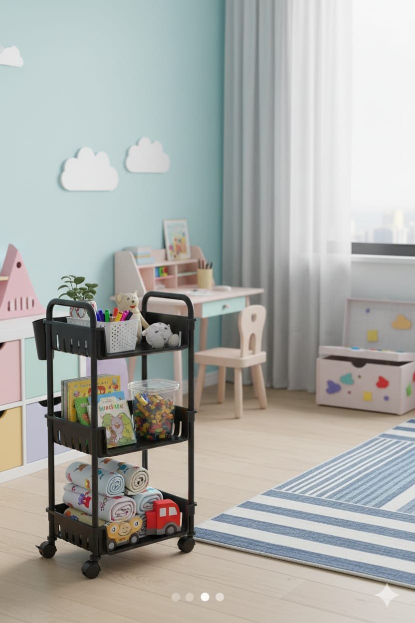 Chariot de rangement 3 niveaux en PVC avec roulettes multifonctions
