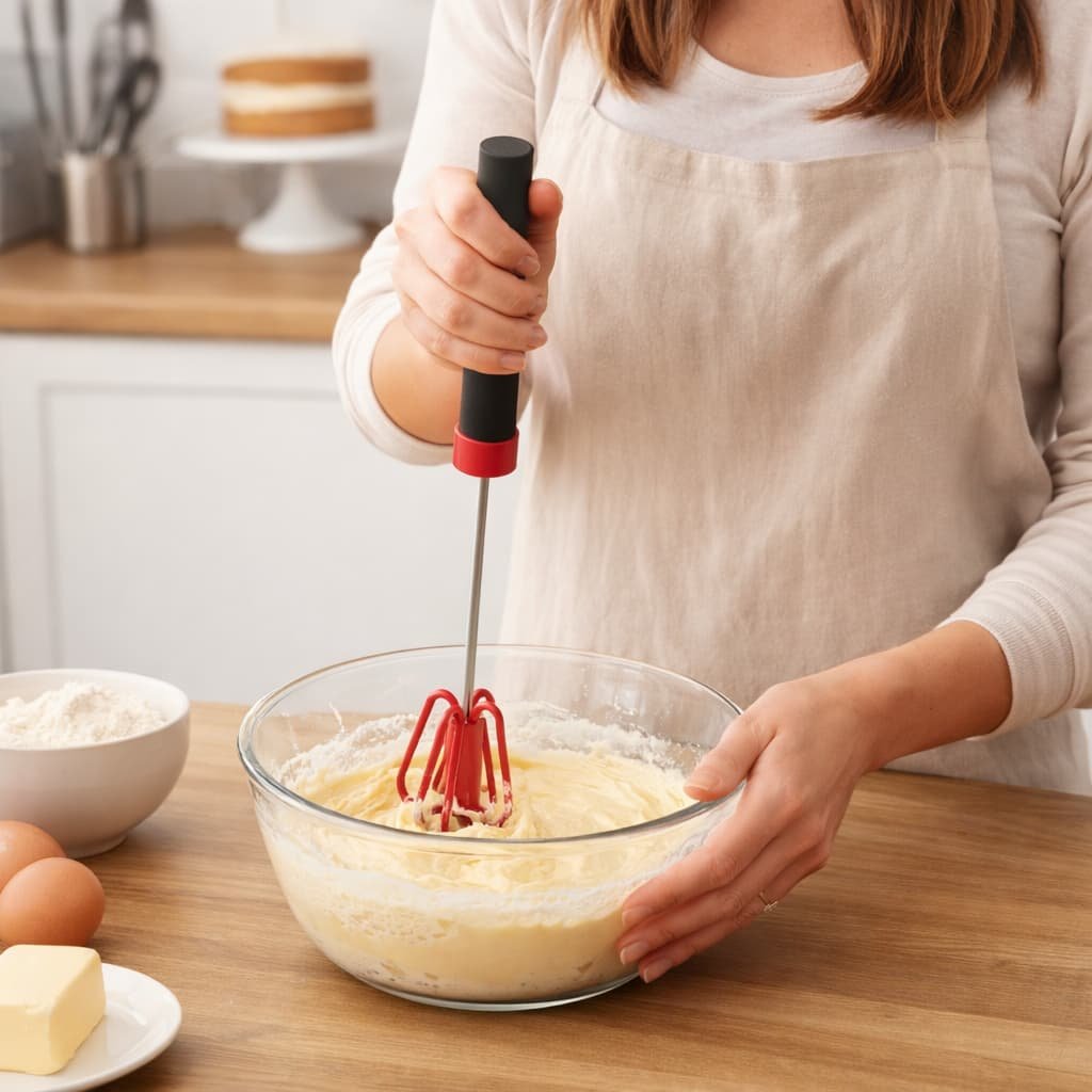 • 🌪️ Mélange ultra-rapide : Grâce à son système de ressort, il suffit d’une pression verticale pour créer un mouvement circulaire puissant. Parfait pour émulsionner (⚡ ➔ 🥣).